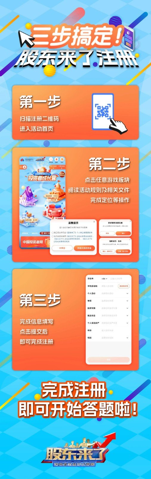 《股東來(lái)了》(2024)由中證中小投資者服務(wù)中心(簡(jiǎn)稱投資者服務(wù)中心)聯(lián)合上海、江蘇、西藏、深圳四地證監(jiān)局?jǐn)y手騰訊集團(tuán)、芒果超媒共同舉辦。本次活動(dòng)設(shè)置上海、江蘇、西藏、深圳四大片區(qū),覆蓋全國(guó)36個(gè)賽區(qū)及港澳臺(tái)地區(qū),青島賽區(qū)屬于西藏片區(qū)。