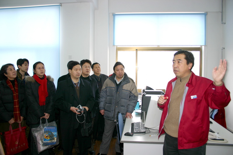 2006年1月14日,青島科技大學機電工程學院院長汪傳生以及學院教師30余人,在公司董事長袁仲雪、資深總工程師杜軍、副總經理張焱、王金健、張澤恩等領導的陪同下,到公司進行參觀,并與公司相關技術人員進行了項目對接交流會。
