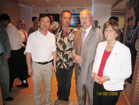8月14日,公司總裁高彥臣、國際貿易部部長魏學亮應斯洛伐克奧運委員會和大陸瑪塔道爾公司邀請,在北京斯洛伐克奧運之家拜會了來華出席奧運會開幕式的斯洛伐克總統伊萬加什帕羅維奇及夫人、大陸瑪塔道爾公司領導羅西納先生一行,并參加了“斯洛伐克運動員奧運會慶功晚宴”。 雙方進行了親切友好的交流。我公司與大陸瑪塔道爾公司在長期的合作過程中,真誠相待,優勢互補,不僅推動了合作產品的國際化,也進一步促進了中斯友好合作關系。
