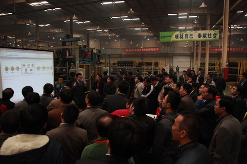 會后,與會人員到金宇的生產現場進行實際考察。信息工程事業部常務副總經理焦清國向與會人員介紹了輪胎MES信息化技術在輪胎生產各個環節的實施情況,并現場演示了生產過程中的工藝、質量、操作等環節的過程防誤控制技術。焦清國介紹說,軟控輪胎MES系統能夠在輪胎生產各個工序進行數據實時自動采集、監控實現了MES系統與生產現場操作的無縫集成,實現了生產過程中人員、設備、物料、工藝、質量、能源各要素的全流程追溯和控制。在計劃調度方面,軟控輪胎MES系統實現了全廠計劃實時聯動,滿足拉動式生產和精益生產控制要求,并通過管控一體化技術和數據挖掘分析技術實現生產管理方式由事后分析向事中控制和事前預防方向延伸。