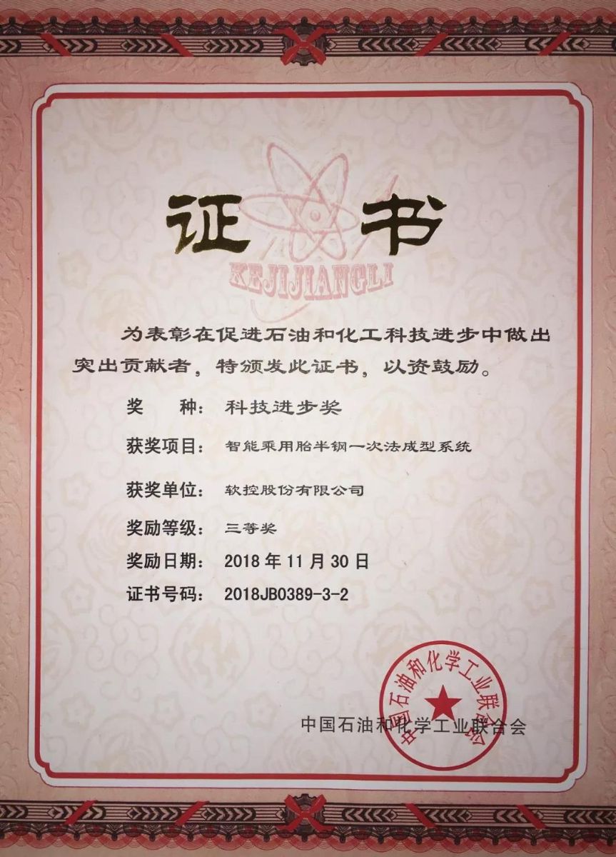 12月3日,由中國石油和化學工業聯合會主辦的全國石油和化工科技創新大會在北京隆重召開。大會隆重表彰了2018年度全國石油和化工科技進步獎項目,軟控股份有限公司“智能乘用胎半鋼一次法成型系統”榮獲中國石油和化學工業聯合會科技進步三等獎。