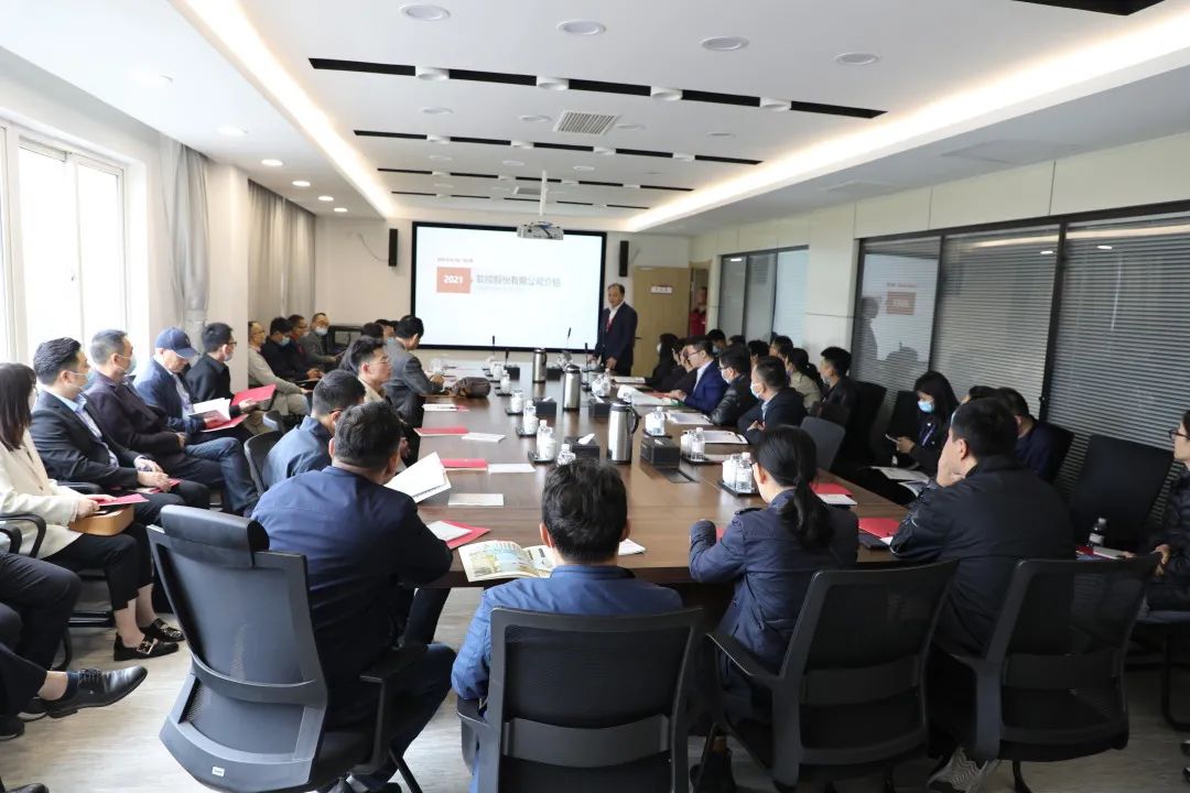 副總經理王建軍為來訪客人介紹了軟控的發展歷程和企業文化,以及近年來公司在橡機智造、戰略新興、新材料領域的應用、全球化布局等方面取得的成果。
