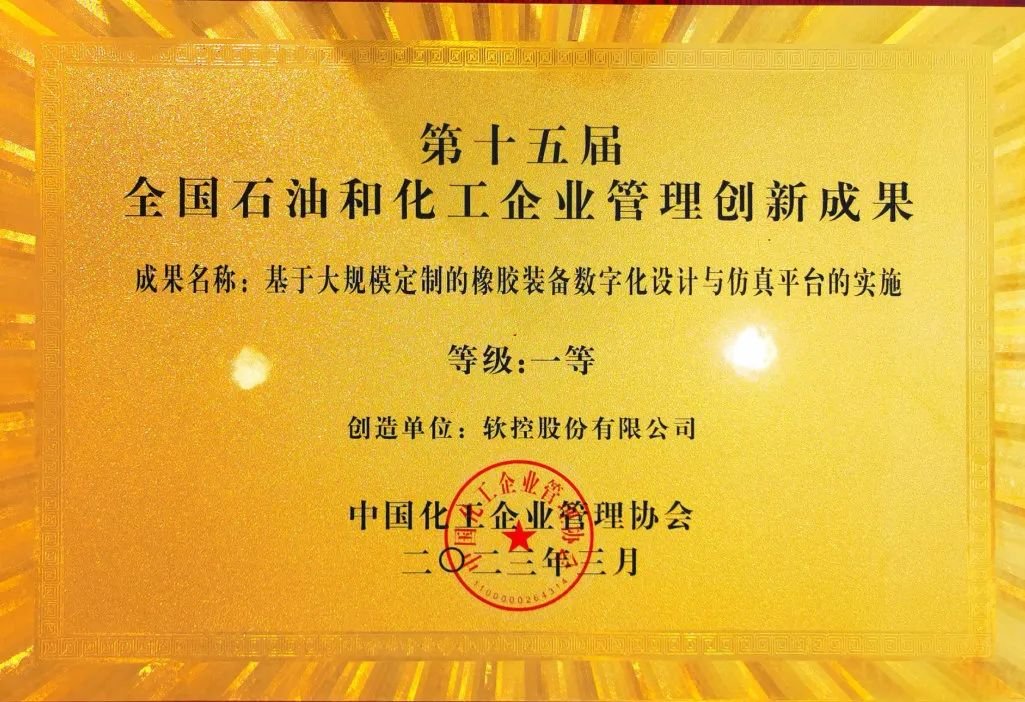 3月30至31日,第十五屆全國石油和化工企業管理創新大會暨高峰論壇在昆明舉行,軟控股份有限公司申報的《基于大規模定制的橡膠裝備數字化設計與仿真平臺的實施》榮獲管理創新成果一等獎。