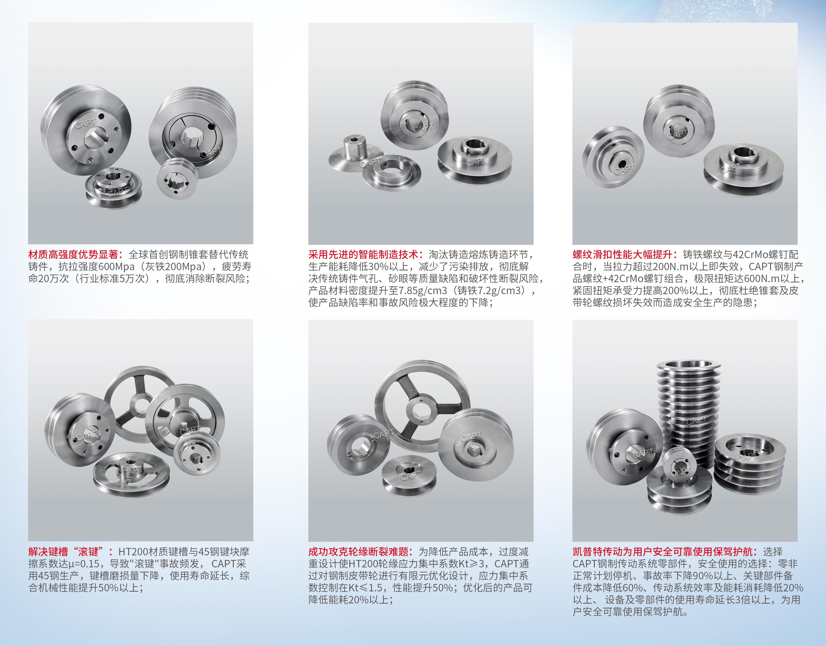 在工業傳動領域,鋼制小直徑主動皮帶輪(<200mm)憑借其卓越的性能表現,正逐步成為替代傳統鑄鐵輪的首選方案。作為專業傳動部件制造商,我們基于先進的材料科學和精密制造工藝,為您提供全方位的工業解決方案。首先了解鋼制主動皮帶輪的核心優勢: